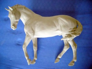 He is sporting a new mane and tail. Now I just have to clean up all the seams etc. When I let it dry out it should be fairly portable by car to a kiln. It will be fascinating to see if it survives firing into bisque. I picked up two gallons of earthenware slip a few weeks ago. I am ready to try pouring a mold all by myself after I’ve done all I can with this piece.