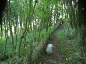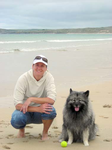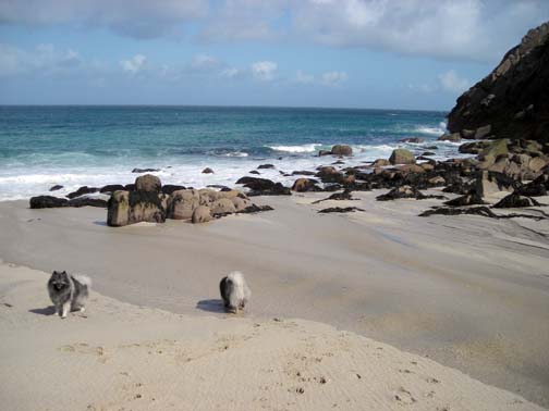I love the UK for being so dog-friendly. On this trip, the Boyz went right with us into castles, pubs, museums, and beaches! We took memberships in both English Heritage and The National Trust, which between the two of them enable us to get into most of the great places and buildings and sites in England. Here they are going up the little spiral staircase at the Tudor Pendennis Castle. We ended up putting one of us at the top of the stairs and one of us at the bottom, and letting go the leashes! (I have never yet met a young dog that will not RUN stairs!)