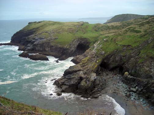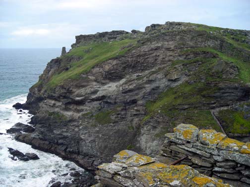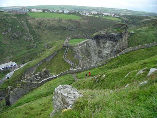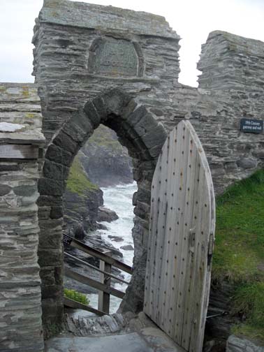The last stop of the trip before we left Cornwall, was Tintagel Castle on the north coast. This site, on its dramatic cliffs (though not much castle left), was a place I never dreamed I’d see. It has a big connection with the Arthurian legend, and that is my connection, too. When I was a teen, the first novels of the King Arthur legend I ever read were Mary Stewart’s “Merlin” series: The Crystal Cave, The Hollow Hills, The Last Enchantment, andThe Wicked Day. I have since read many many other versions of the Arthur story, but Stewart’s books remain my favorites. Her descriptions of Wales, Cornwall, Brittany and England of that post-Roman era were entirely responsible for me becoming such and Anglo-phile. One of the most dramatic parts of the story takes place on Tintagel and wow I still can’t believe I stood there. In fact because there is so little in the way of buildings there, you are completely free to imagine your own fantasy about what it might have looked like at the time Arthur supposedly lived. Here are a couple Tintagel photos: