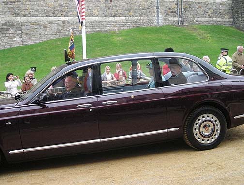Here’s the Queen and Prince Phillip riding down the road in the car to the ceremony: