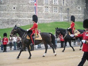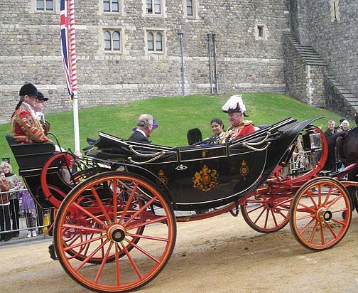 I was able to stand right on the side of the street less than 10 feet from the parade and carriages, what fun. We were right under the castle wall which was a great backdrop. I was waving and cheering right along with the Brits. The Queen and the President of India (a woman, whose name I ought to look up but am too lazy…) were in the first closed carriage, followed by Prince Phillip and (I assume) the President’s spouse. Then Prince Charles and Camilla were in an open carriage so I got a good look at him, and he looked right at me. I’m thinking, “o my gawd, that’s Prince Charles!” because I didn’t know he’d be there too, and I almost forgot to take the photo! It all went by so fast because the horses were trotting. I’ll have to look in the newspaper tomorrow to read exactly who all was there; I’m thinking Gordon Brown, the British Prime Minister, might have been in one of the carriages, too.
