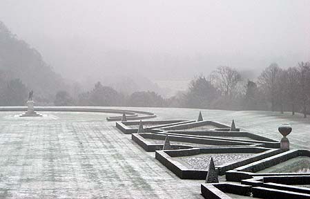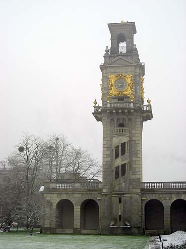 Later it began to snow for real, so I drove up to Cliveden. This famous estate is up on a hill overlooking the Thames so it had a little bit more snow. It was a great place to take photos of the snow. I walked all the way around the building and took a bunch of photos. And hit up the gift shop of course. (I’ve got to get out of this country, the gift shops are going to kill our finances!!!) Here are photos of their garden, the Thames, and their ornate gilt clock tower.