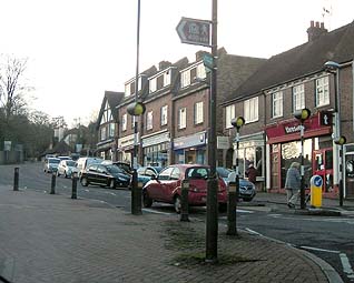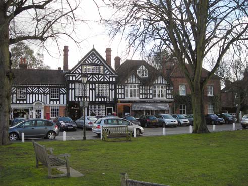 Above is an example of a very very typical town center I drove through today. I don’t recall the name of the town but it was built up a hill with the train station at the top. (A good example of all the “road furniture” to navigate, too.) The look of this little main shopping street is so very common in my area of Berkshire/Buckinghamshire. It is surprisingly hard to find distinctive or unusual architecture; it seems like every parish has used the exact same planning requirements for housing and retail. The really older buildings end up being what you watch out for.