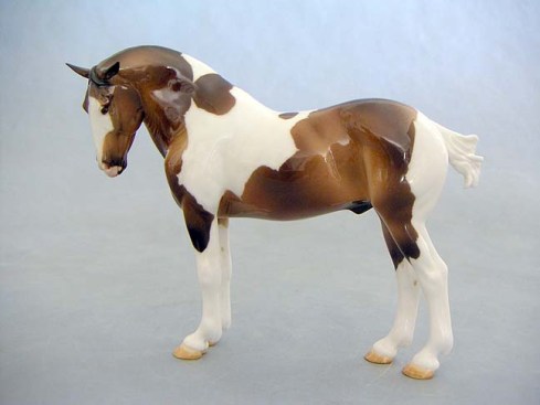 Better really late than never… Here is my donation to the Breakables Show benefit silent auction this Thursday. It is a “Halfling Boreas” in bone china, custom glazed by me to a bay tobiano. It is from my personal collection.