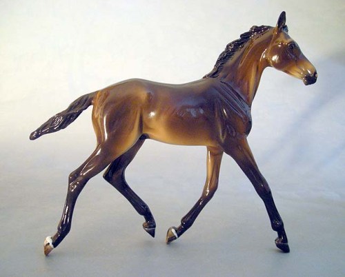 I finally finished glazing the Breyer porcelain Giselle and Gilen mare and foal. They are now both glossy bay with minimal white markings. Many collectors have mentioned the lack of “plain” solid-colored horse models being painted so here is a set just for you! I think the almost-black Giselle is really attractive and looks totally the sport horse broodmare in this color. And I thought long and hard about just keeping this sweet Gilen for myself.