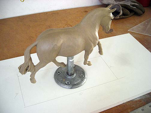 The photo above shows Roundie on his much shorter post with the dimensions of the mold box drawn on the base. I want to make the box as small as possible because that means less rubber to pour and to cut apart.
