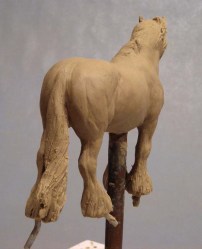 This is a small (4″ tall) sculpture of a Gypsy Cob that I started last winter which has been stalled ever since. It is a mare, tentatively named “Juniper”. I don’t have that much more work to go on it, but I’ve kind of lost interest in it.
