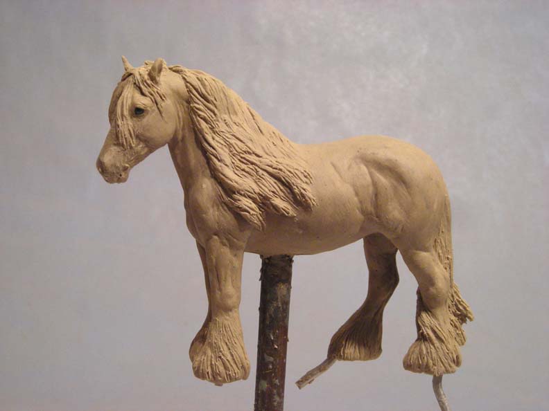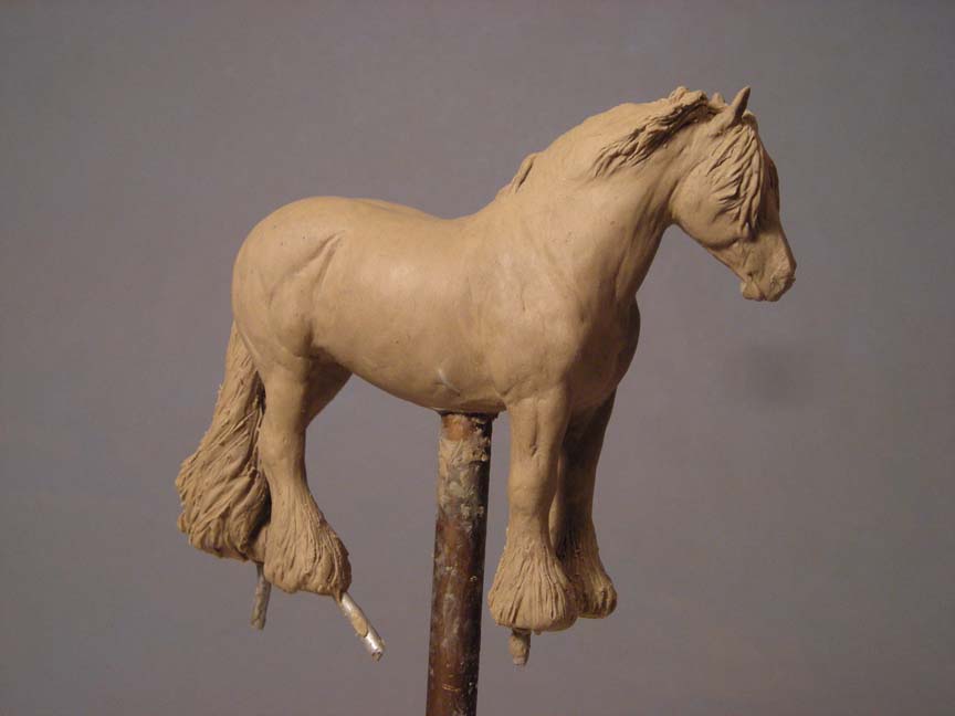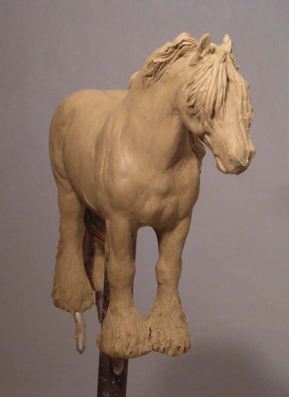 This is a small (4″ tall) sculpture of a Gypsy Cob that I started last winter which has been stalled ever since. It is a mare, tentatively named “Juniper”. I don’t have that much more work to go on it, but I’ve kind of lost interest in it.