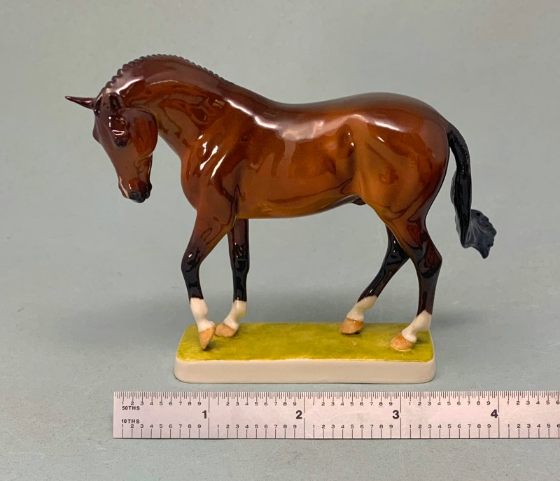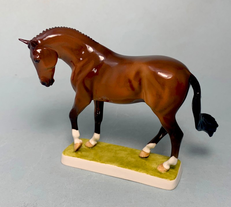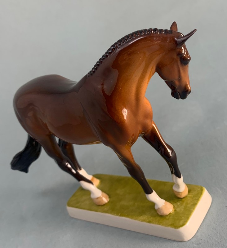 The first group of 14 pieces in the edition are ready to order. The Mini Caprice 20th Anniversary OF china edition will be 30 pieces total, earthenware china on a base, as shown. It’s roughly 4″ x 4″. All finished to a golden bay with 4 white socks and a snip on the nose.